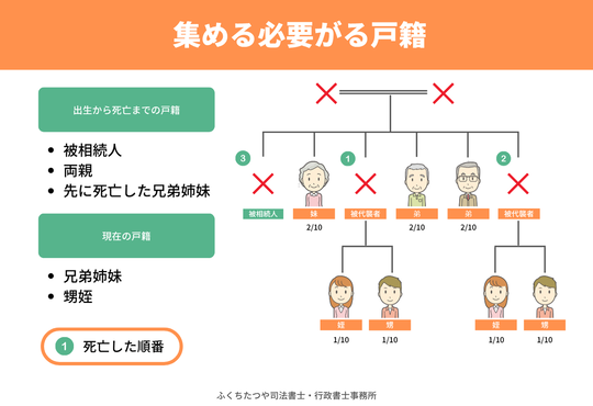 兄弟姉妹が相続人になる場合は、すべての兄弟姉妹を特定するために、被相続人の両親の戸籍謄本も必要になります。