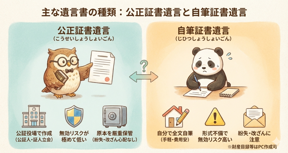 一般的に利用される遺言書には、主に以下の2種類があります。
