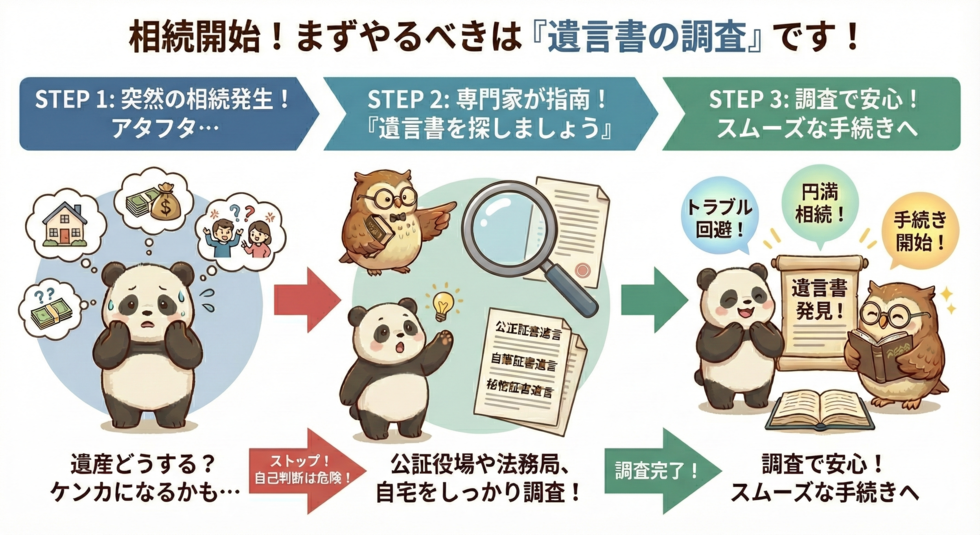 このようなリスクを避けるためにも、相続が始まったら最初に行うべきなのが遺言書の調査なのです。